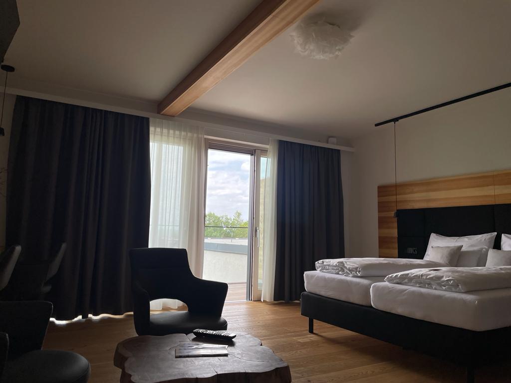Die Kombination aus De-luxe-Zimmer und Suite mit einer Verbindungstür bietet auf ca. 60 m² viel Platz für einen unbeschwerten Familienurlaub. Die Familien-Suiten verfügen in der Suite über ein Doppelbett, eine Doppelcouch, eine Sitzecke, Dusche und WC, Fön, ein In-Room-Tablet mit zahlreichen Informationen über die Hotelanlage und die Umgebung, Telefon, Safe, Kaffeemaschine, Schreibtisch, kostenloses WLAN und SAT-TV sowie eine einmalig gefüllte Minibar. Im De-luxe-Zimmer gibt es zusätzlich ein Doppelbett, Dusche und WC, Fön, ein In-Room-Tablet, Telefon, Safe, Kaffeemaschine, Schreibtisch, kostenloses WLAN und SAT-TV sowie Minikühlschrank (Minibar). Die Zimmer sind mit Holzboden und Fußbodenheizung ausgestattet und bestens geeignet für Familien mit 2 Kindern oder für 3 Erwachsene.